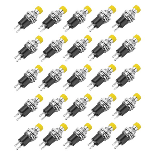 sourcing map 30 Pcs 1A 250V AC 7mm Mini Momentary Push Button Switch SPST NO Yellow Switch Button with Soldering Foot for Electronic Devices