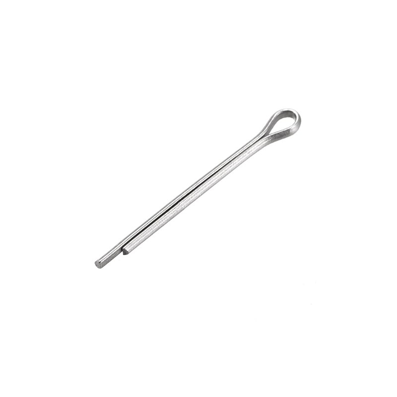 A cotter pin secures two items through a common hole. Insert the split pin into the hole, the bulbous head prevents the pin from moving completely through. Then bend the open tips to attach them. Depending on the application, different sizes and designs are available.
