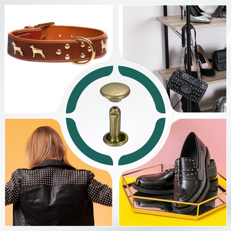Wide Application: Leather rivets are usually used to repair and decorate items such as belts, bags, totes, handbags, wallets, crafts, etc. They can also be used to decorate clothing such as shoes, jackets, jeans, etc. A variety of materials can be used, such as leather, paper, fabric, etc.