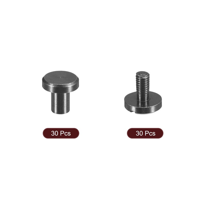 sourcing map 30Pack Brass Chicago Screws, 5x8mm Flat Head Screw Back Binding Post Nail Stud Rivets for DIY Leather Craft Belt Strap Black