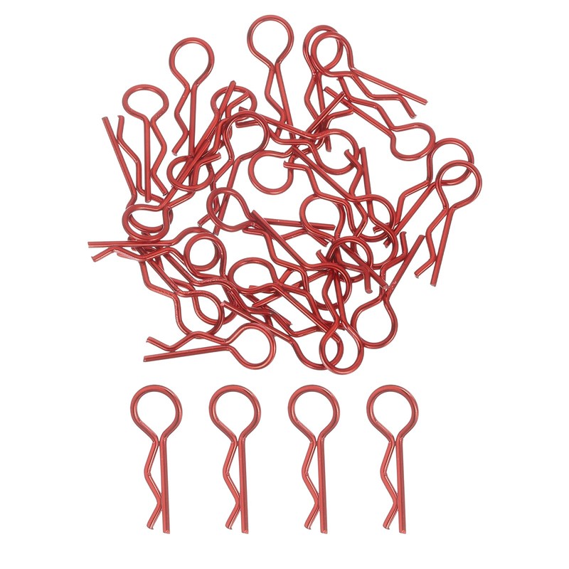 - The package contains: 30-Pack 30-Degree RC Body Clips; Rod Diameter: 0.04inches/1.0 mm; Total Length:0.79inches/20mm; Ring Diameter:0.29inches/7.3mm; Material: Metal; Color: Red