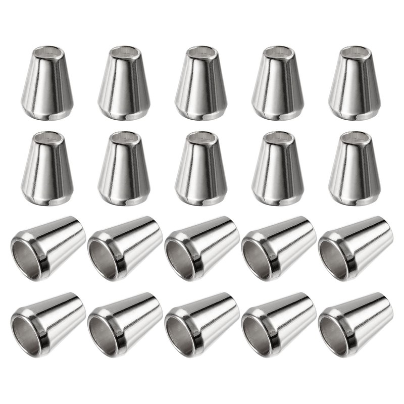 sourcing map 30Pcs Metal Bell Stopper, 5mm Conical Cord Ends Lock Rope Fastener End Stoppers for Drawstring Lanyard Backpack Bag DIY, Silver