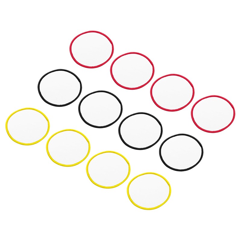sourcing map 30pcs Sublimation Patch Blank, Round Fabric Iron-on Blank Heat Transfer Repair Patch for DIY Crafts Caps Clothes, White with Black/Red/Yellow Border