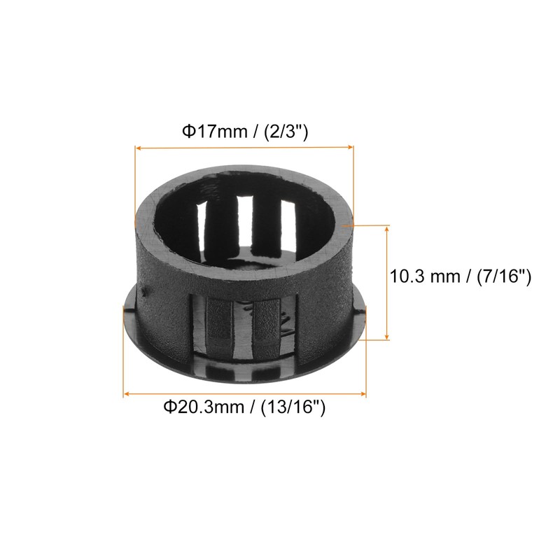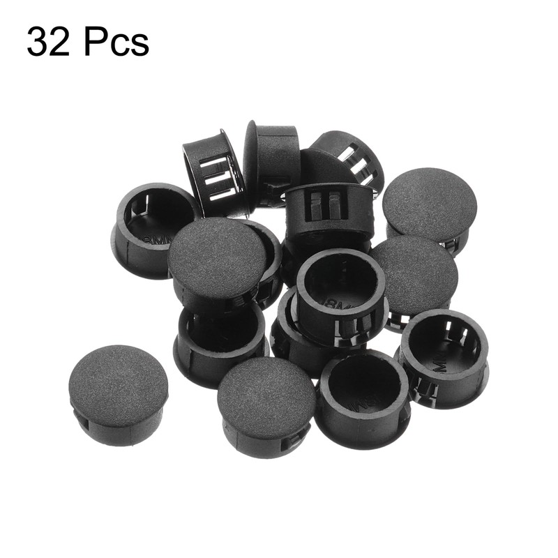 - Black Plastic Hole Plugs, Hole Diameter: 17mm, 2/3 Inch; Cap Diameter: 20.3mm, 13/16 Inch; Total Height: 10.3mm, 7/16 Inch; Color: Black; Material: Nylon; In the package: 32 PCS x Hole Plugs