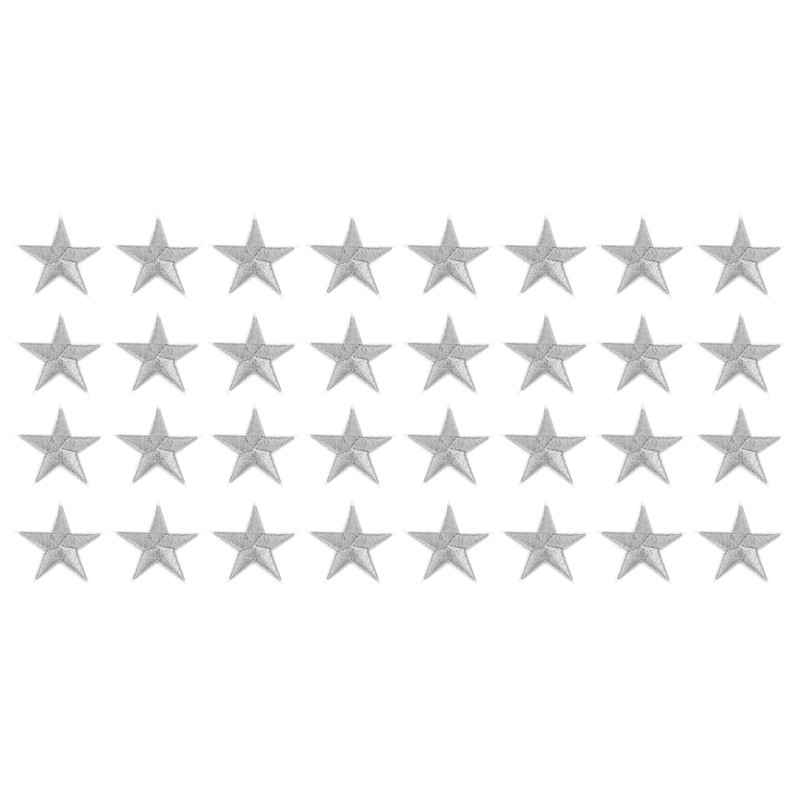 sourcing map 32Pcs Iron on Star Patches, Sew on Star Embroidered Patches, Decorative Repair Patch Applique for DIY Crafts Backpacks Bags Hats Clothes, 45mm Silver