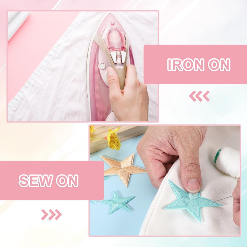 - [Easy To Use] - These star patches are coated with glue on the back and can be bonded after heating; during the ironing process, please make sure the clothes are dry, control the preheating temperature, and iron from the reverse side. Also you can directly sew onto your clothes, not only repair damaged clothes, but also achieve decorative effects