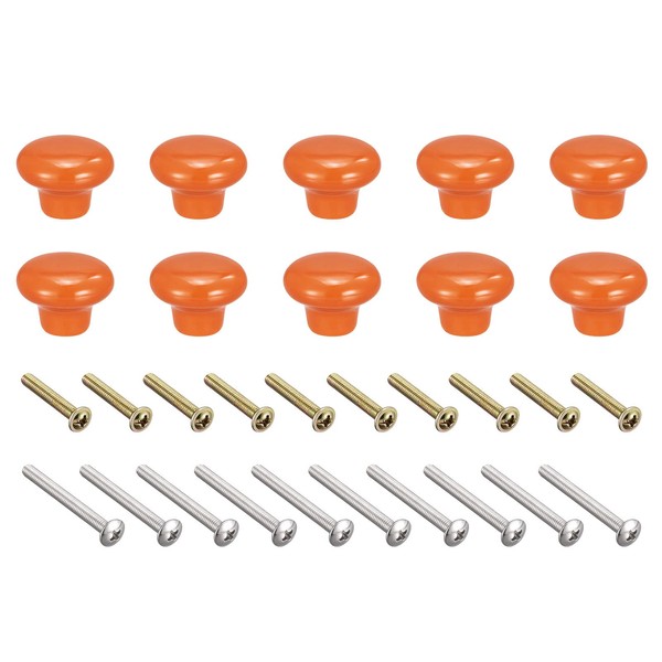 sourcing map 32x24mm Ceramic Drawer Knobs, 10pcs Mushroom Shape Door Pull Handles Orange