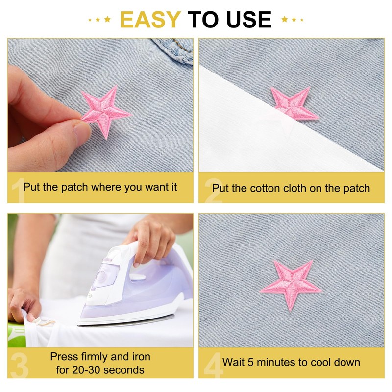 For a better application, preheat your iron and ensure the fabric is dry. Follow the included instructions for ironing or sewing. Get creative and let your style bloom with our Premium Star Shape Patches Stickers!