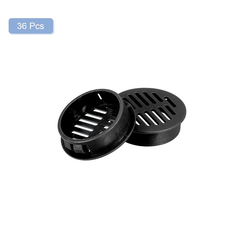 sourcing map 36Pcs 35mm/1.38" Circular Soffit Air Vents, Plastic Soffit Vent Cover, Round Mesh Hole Louver for Bathroom Kitchen Cabinet Wardrobe, Black