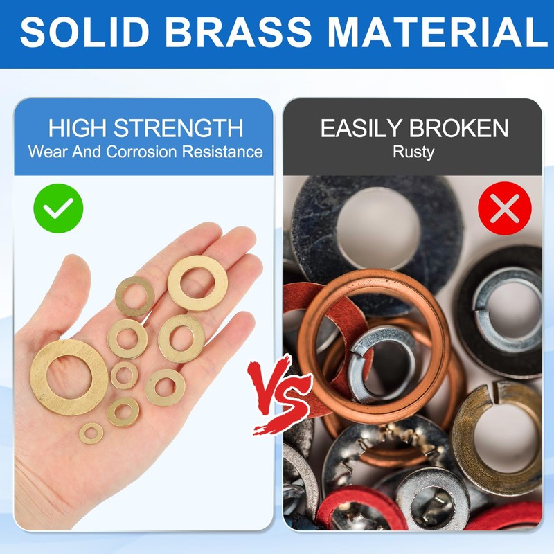 - The metal washers we provide here is in size of: Washers for screws: M3; Outer Diameter: 12mm/0.47 Inch; Inner Diameter: 3mm/0.12 Inch; Height: 1mm; Material: Brass; Color: Gold; Material: Brass; Package Included: 38Pcs x screw washers.