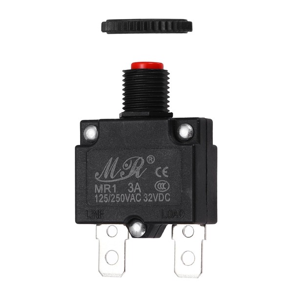 sourcing map 3Amp Thermal Circuit Breaker, 125/250V AC 32V DC Push Button Manual Reset Circuit Overload Protector Switch, Red
