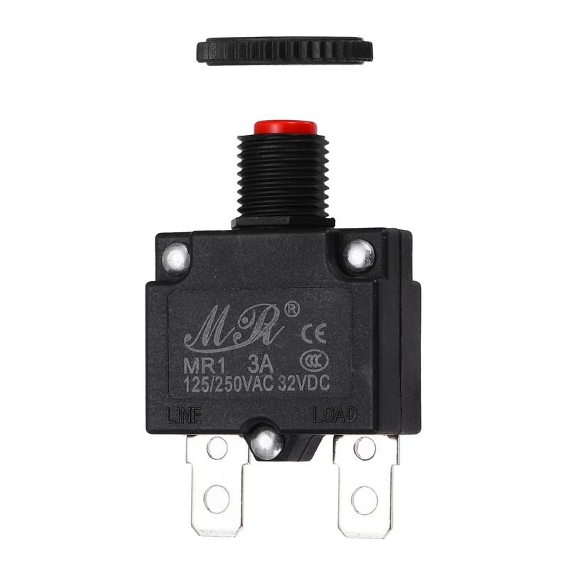 - Total Size: 44.5x28x13mm/ 1.75x1.10x0.51 Inch(L*W*T);Pin Length:11mm/0.43 Inch;Thread Length: 9mm/0.35 Inch;Button Color:Red;Rated voltage:125/250VAC,32VDC;Rated current:3A;In the package of: 1pcs x Push Button Circuit Breaker(Each include 1pcsxGear plastic gasket)