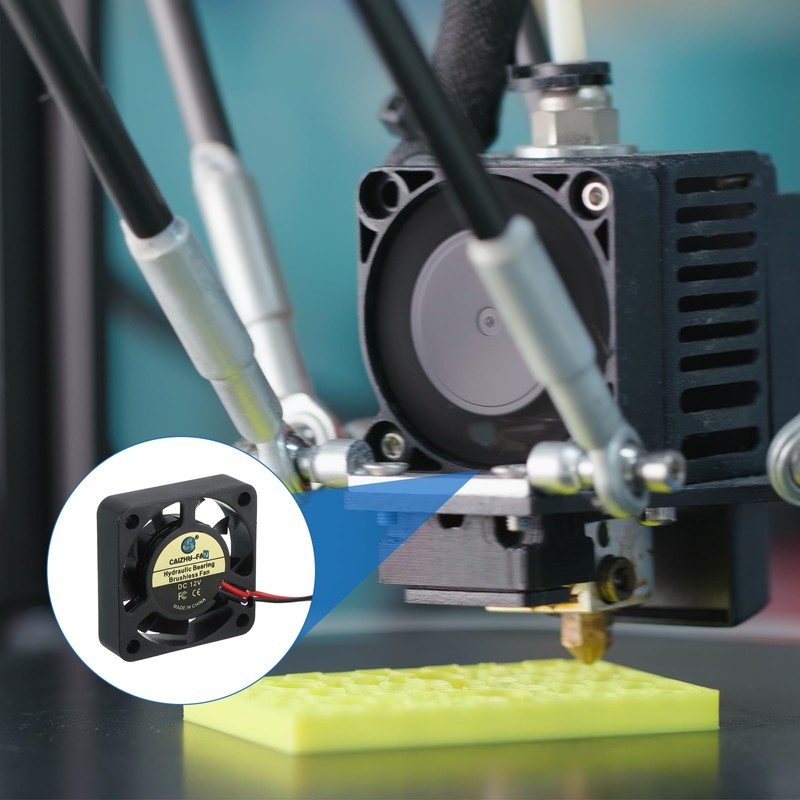 A 3D printer cooling fan is a component designed to regulate temperature during printing. It directs airflow to rapidly cool extruded molten filament to solidify layers quickly, preventing warping, improving overhangs/bridges, and ensuring dimensional accuracy.