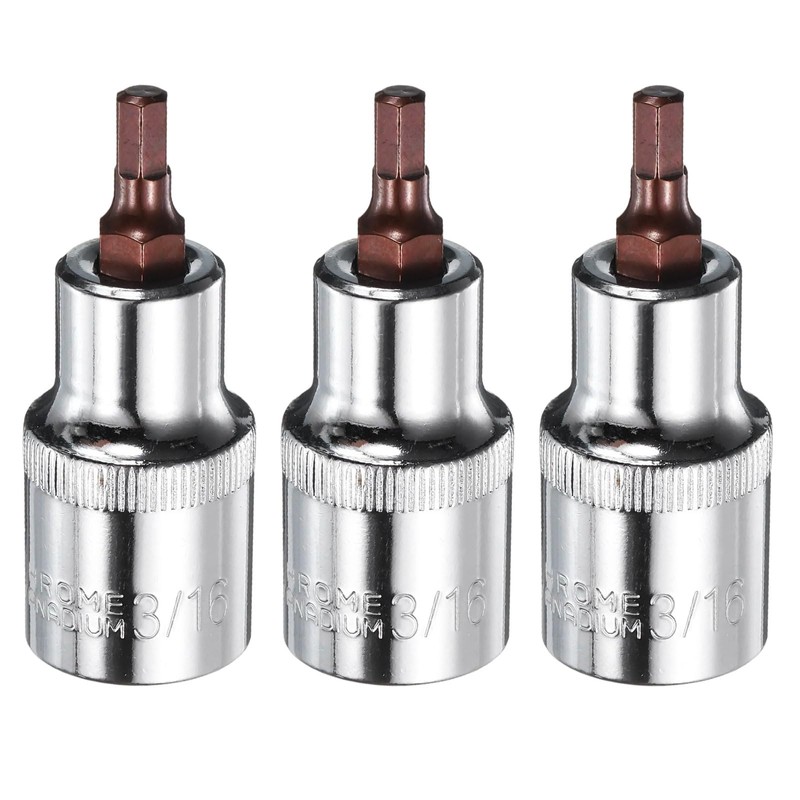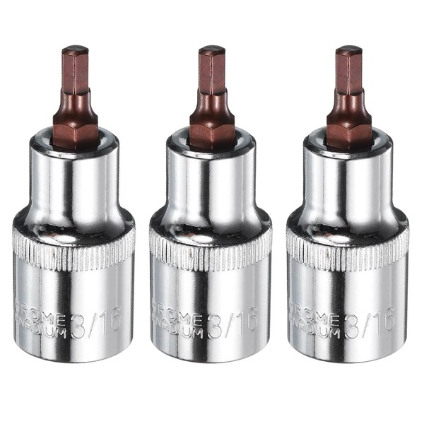 sourcing map 3pcs 3/16" Hex Bit Socket 1/2" Square Drive SAE Extension Impact Bit Power Nut Driver Set S2 & CR-V Steel Socket Ratchet Wrench Bits