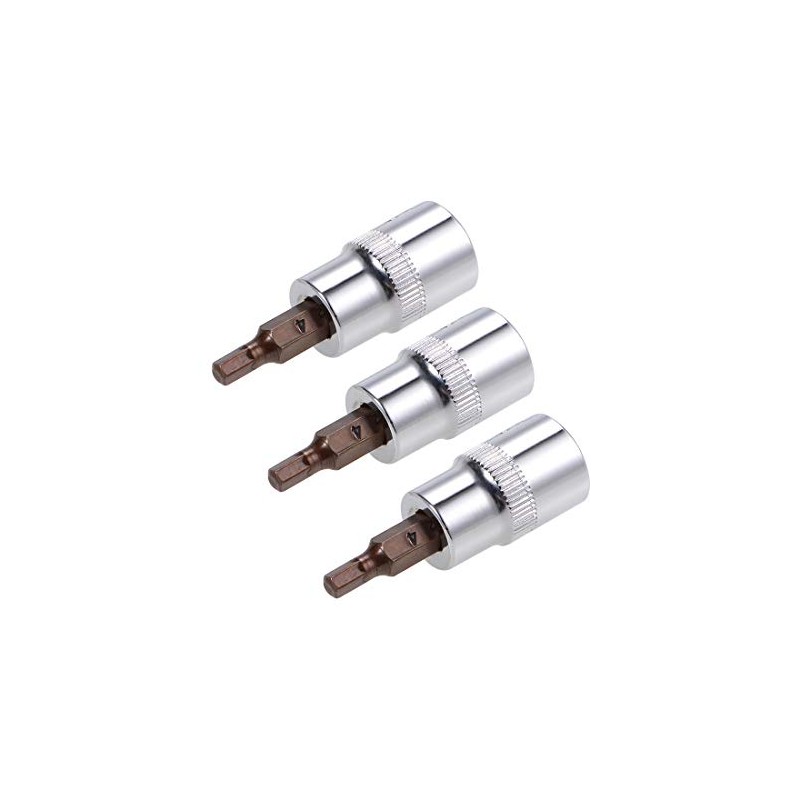 sourcing map 3pcs 3/8" Drive x H4 (4mm) Hex Bit Socket, S2 Steel Bits CR-V Sockets 38mm Length Use with Ratchet Wrench, Slide Bar, Extension Rod