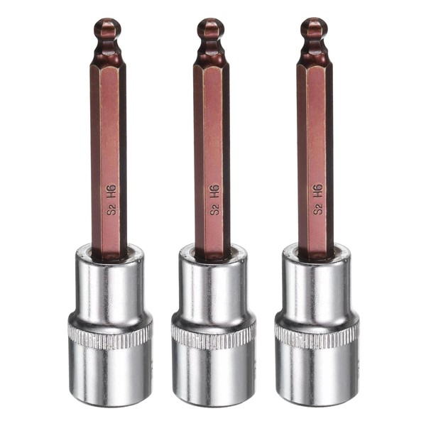 sourcing map 3pcs 6mm Ball End Hex Bit Socket 1/2" Square Drive Metric Extension Impact Bit Power Nut Driver Set S2 & CR-V Steel Socket Ratchet Wrench Bits