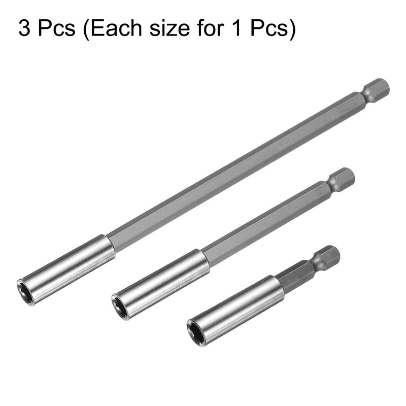 sourcing map 3pcs Magnetic Bit Holder 2.4" 4" 6" Length 1/4" Hex Shank Stainless Steel SUS304 Extension Screwdriver Bit Holder Quick-Change Bit Adapter