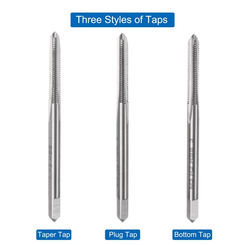 Three Styles: Taper Tap: Start the thread and guide it into the workpiece, commonly used when tapping through holes; Plug Tap: Creates deeper threads than taper taps, suitable for through-hole and blind-hole applications; Bottom Tap: Generate threads close to the bottom of a blind hole.