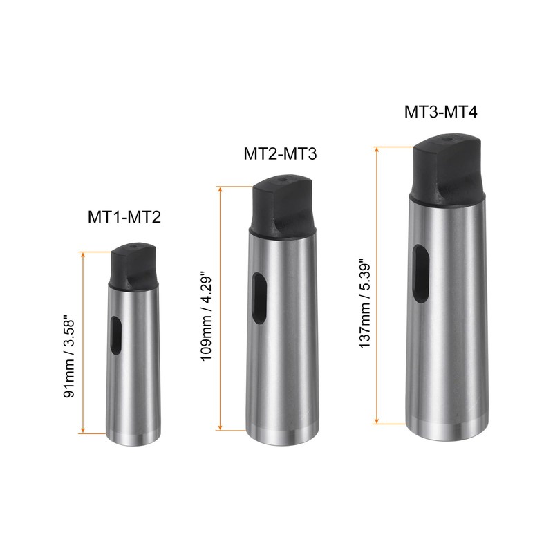 - Size - Outside Taper: MT2/MT3/MT4, Inside Taper: MT1/MT2/MT3, Accuracy: 0.02mm, Total Length: 91mm / 3.58",109mm / 4.29",137mm / 5.39".