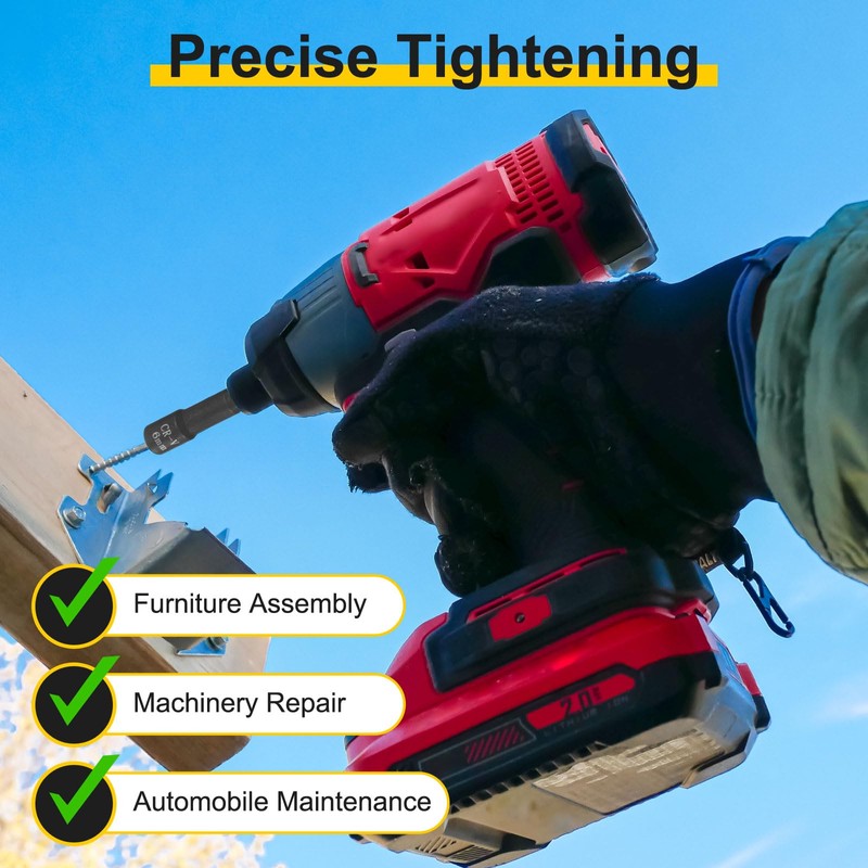 • Features - Power nut drivers feature a magnetic tip, ensuring screws and bolts are securely held in place for effortless and precise application. Hexagonal design helps achieve a solid grip and effective torque transfer from the tool to the fastener, reducing the effort needed. Additionally, the extended length design of this nut driver drill bit tool provides enhanced reach and access in tight spaces, ensuring it can effectively handle a wide range of applications with precision and ease.
