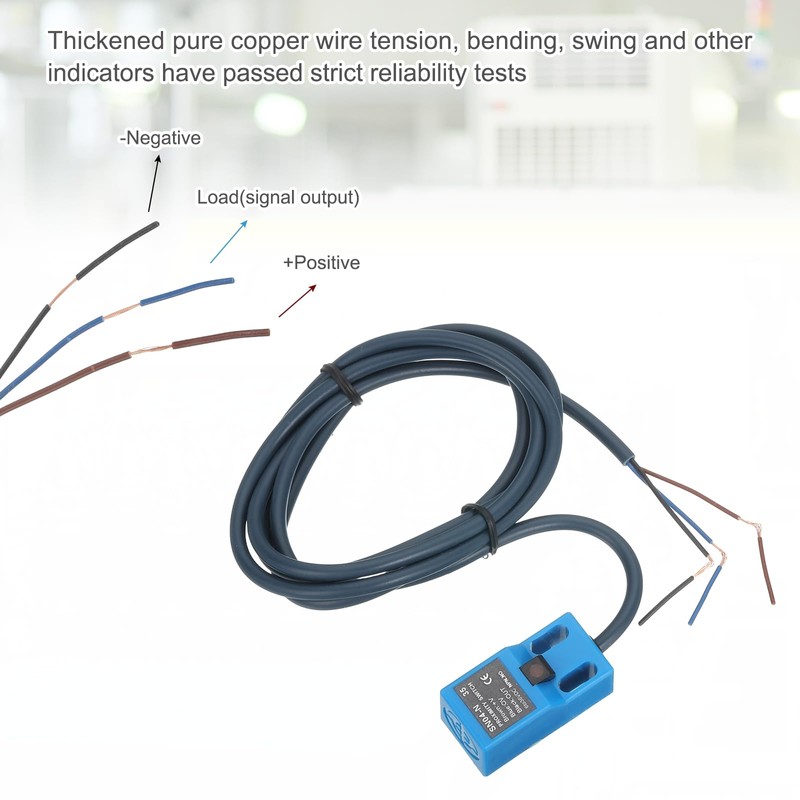 - The proximity sensor is made of ABS material, which is heat-resistant, stable and reliable, shock-resistant, dust-proof and waterproof. It can withstand factory workshop environments and harsh environments. It has thickened pure copper wires, and various indicators such as tension, bending, and swing have passed strict reliability tests. It is easy to install and use, plug and play, with a built-in sensitive sensor chip, fast response.