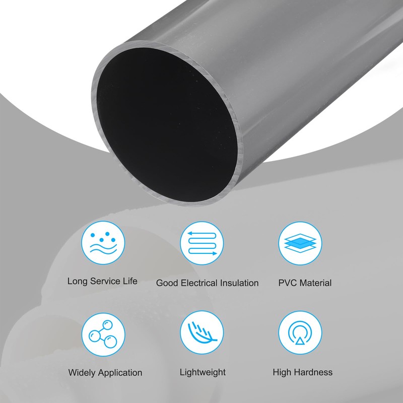 sourcing map 4.3 Inch PVC Rigid Tube Round Pipe 101.6mm ID 110mm OD 500mm Light Grey High Impact for Water Pipe, Crafts, Decoration, Cable Sleeve