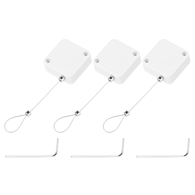 sourcing map 4.9 ft Retractable Cable Lock with Latch Remote Control Security Lock with Adjustable Cord Tether Anti Theft for Laptop, TV, 600g, White, 3 Pack
