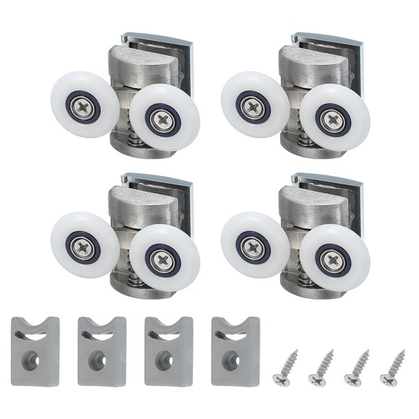 sourcing map 4 Pcs 25mm Double Shower Door Rollers 304 Stainless Steel Bottom Wheels Silver