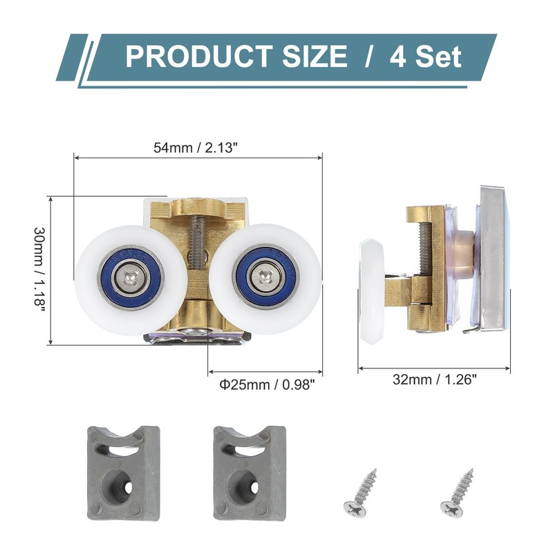 sourcing map 4 Pcs 25mm Double Shower Door Rollers Copper Top Wheels Copper Tone