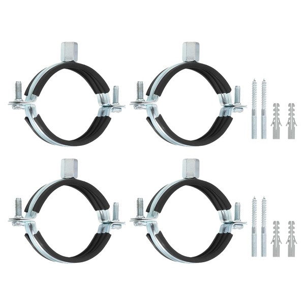 sourcing map 4 Pcs Adjustable Pipe Bracket Clamp, 2-1/2"(64mm) Wall Ceiling Mount Split Ring Pipe Hanger Galvanized Iron Pipe Strap Support with Screw & Expansion Tube for Pipe Tube