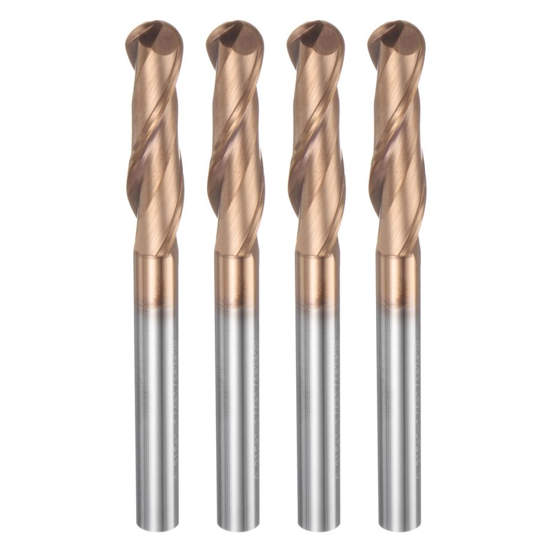 - Size - Total Length: 3", Cutting Length:1-1/4", Cutting Diameter:0.315", Shank Diameter:1/4", Flute Type: 2 Flute, Surface Treatment: TiAlN Coated, Package Included: 4pcs Ball Nose End Mill.