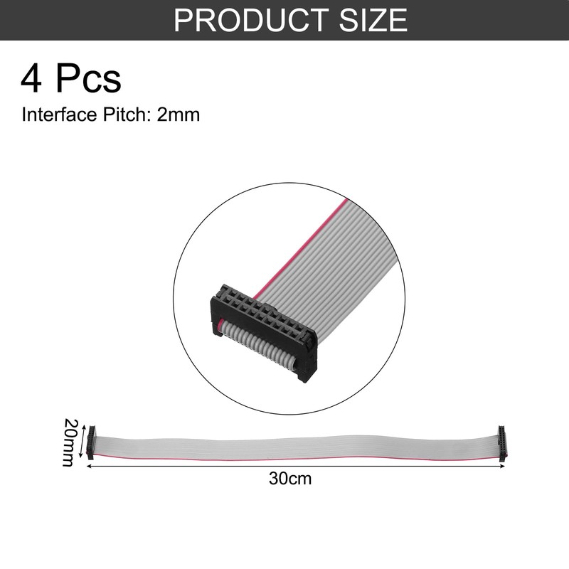 sourcing map 4 Pcs IDC Flat Ribbon Cable, 2mm Pitch 20mm Width 30cm Long 20 Pin FC to FC Flat Ribbon Connector Jumper Wire for PC, LED Displays
