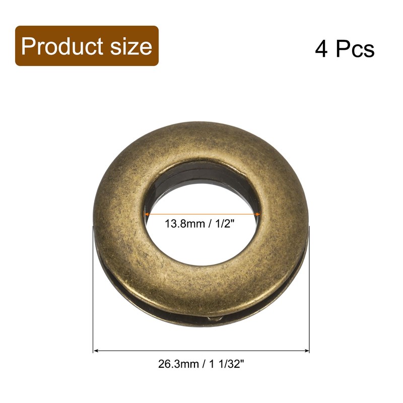 sourcing map 4 Pcs Zinc Alloy Screw Rings Eyelet Grommets, 1/2"(13.8 mm) Metal Screw-in Rings Grommet for Curtain Bag Loop Handle Connector Purse Accessories (Bronze)