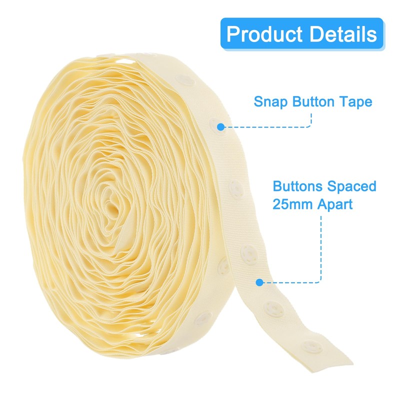 sourcing map 4 Yard Snap Button Tape for Sewing, Cotton Snap Button Trim Fastener Buckles Tape for Clothes Fabric DIY Craft, Beige