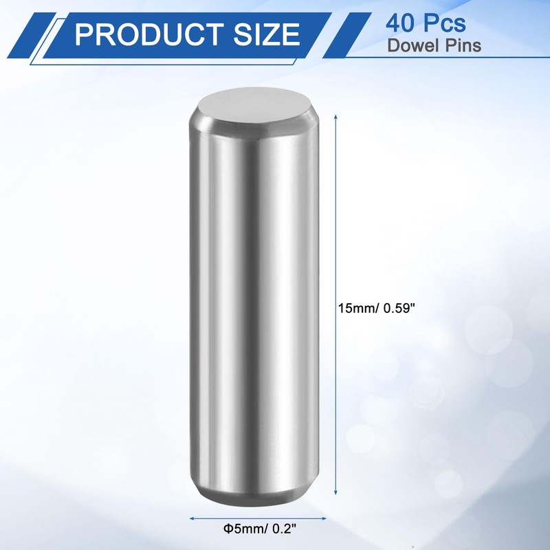 sourcing map 40 Pcs 5 mm x 15 mm Dowel Pins 316L Stainless Steel Cylindrical Dowel Pins Shelf Support Peg Pin Rod Fasten Elements Metal Shelf Pegs Silver Tone