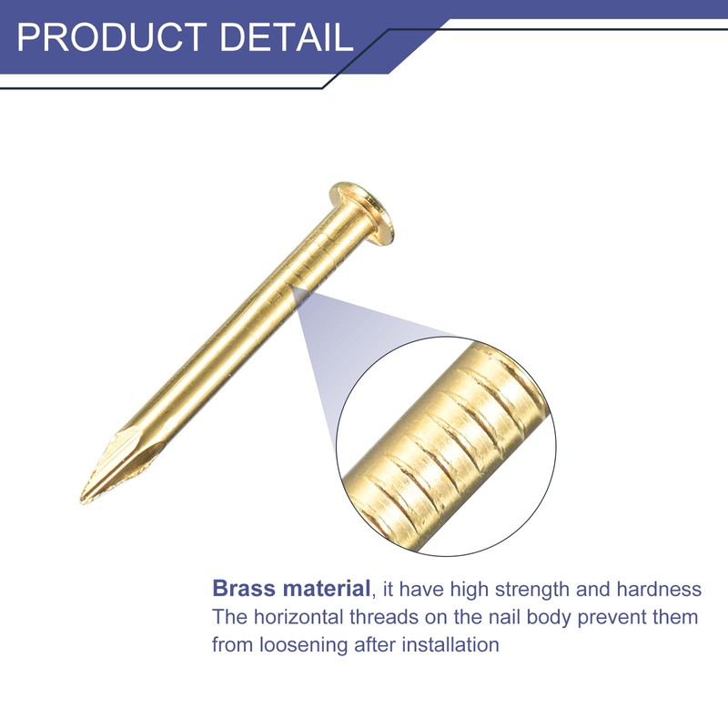 - [Features] Tiny brass nails are compact and portable, and the horizontal threads on the nail body prevent them from loosening after installation. These nails will not bend unnecessarily when driven in with a hammer.
