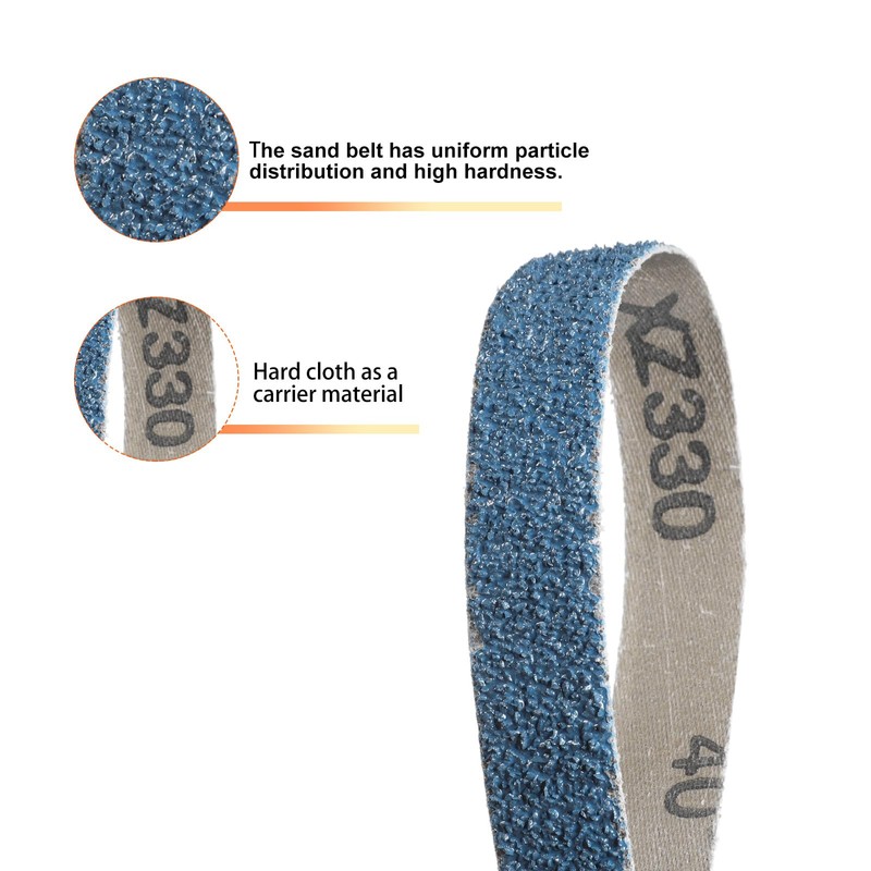 5. Package Content: 40pcs 0.75 x 20.5" sand belt 40/60/80/120 Grit, with uniform grain distribution, sanding belts offer consistent performance throughout their lifespan
