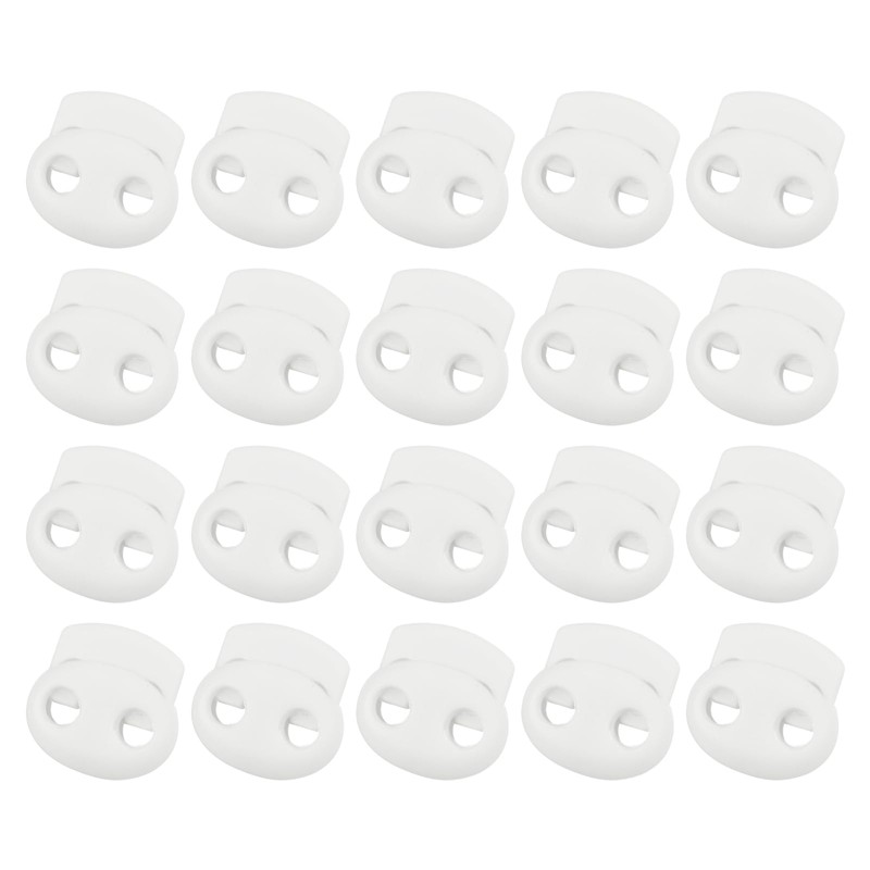 sourcing map 40Pcs 5mm Plastic Cord Locks Double Hole Spring Slider Toggles Clip End Stopper Fastener for Drawstrings Paracord Shoelace, White