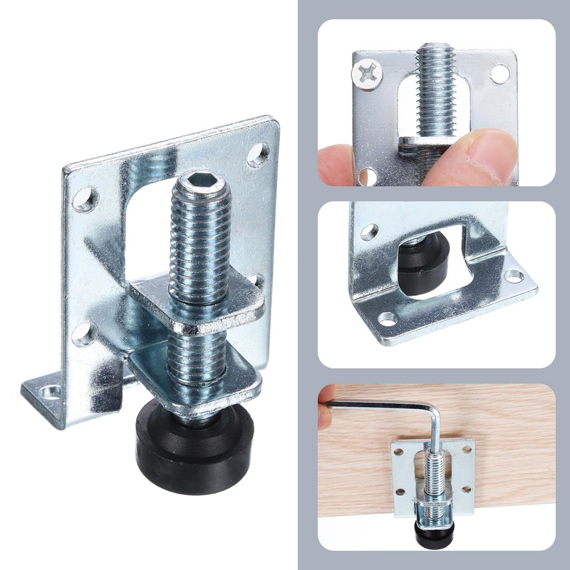 - Material: Constructed from cold rolled steel and featuring a rubber bottom which has anti-skid pads, these adjustable furniture feet protect floors from scratches due to direct contact with furniture legs while also reducing noise from movement.