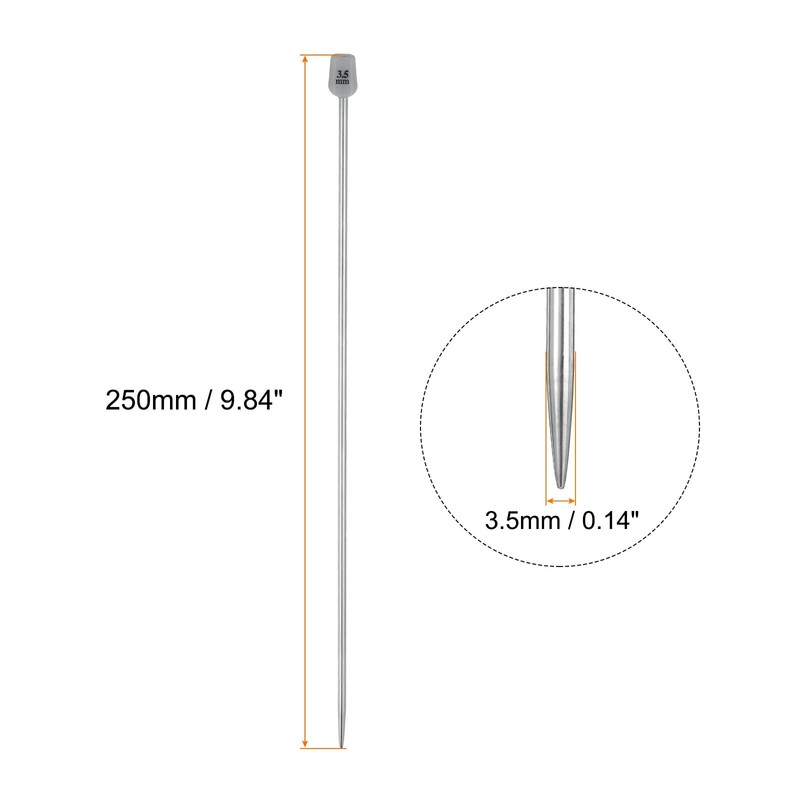 sourcing map 4Pcs 3.5mm(E) Single Pointed Knitting Needles Stainless Steel 9.84 Inches Length Metal Weaving Tool for Handmade Projects DIY Knitting