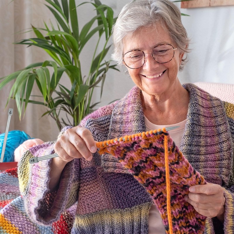 1. Knitting needles are made of Stainless Steel, which is durable, smooth, and comfortable to use.
