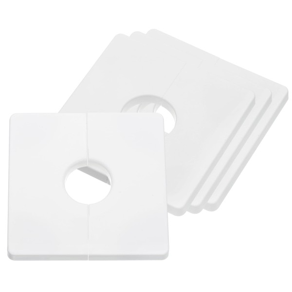 sourcing map 4Pcs ABS Plastics Square Shaped Escutcheon Plate, Wall Split Flange, 28mm Diameter Wall-Mounted Pipe Mouth Decorative Cover, White