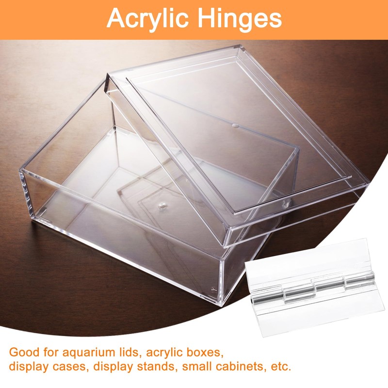 - [Wide Application] - The acrylic hinges are widely used for aquarium lids, acrylic boxes, jewelry boxes, acrylic display cases, glass boxes, display stands, small cabinets, drawer and DIY crafts.