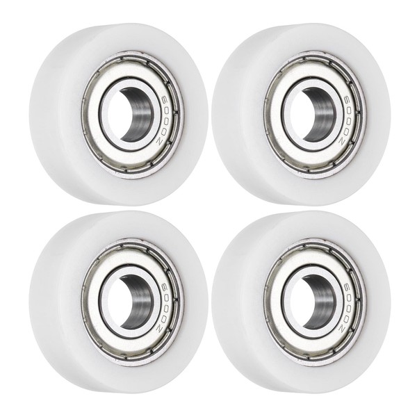 sourcing map 4Pcs Ball Bearing Guide 10 x 35 x 11mm Double Shielded POM Roller Bearings, Flat Pulley Wheel for Furniture, Hardware Accessories, White