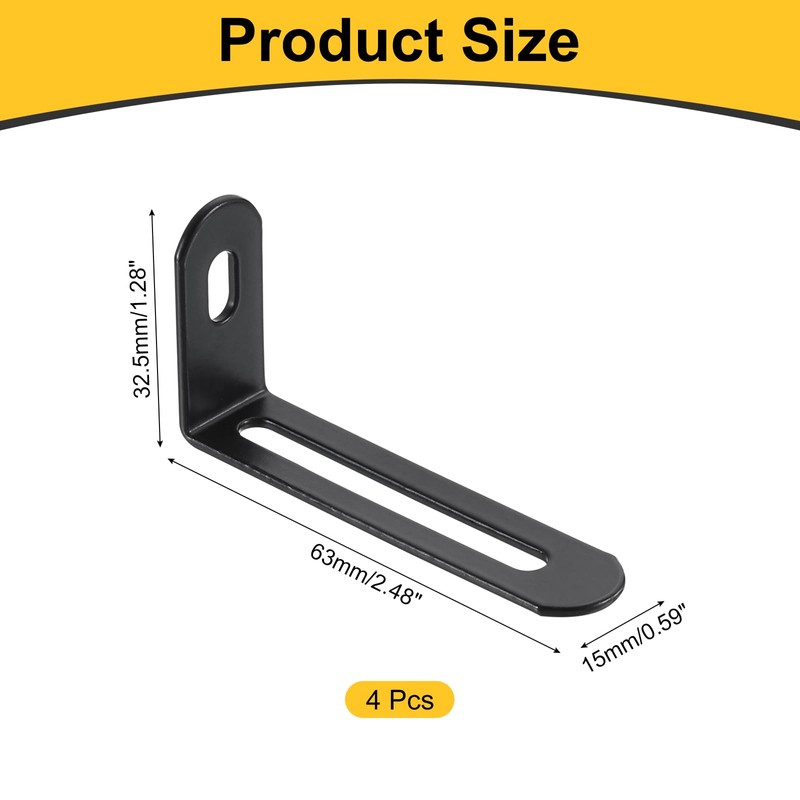 - Colour: Black; Material: Metal; Surface Treatment: Spraying; Overall Size: 63mm x 32.5mm x15mm / 2.48" x 1.28" x 0.59"(L*W*H); Thickness: 2mm / 0.08"; Package Contents: 4Pcs x L Brackets Corner Brace