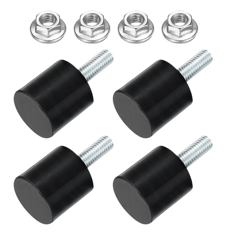 sourcing map 4Pcs M6 Thread Rubber Mounts, Vibration Isolators, Cylindrical Shock Absorber with Studs 20 x 20mm with Non-Slip Nuts