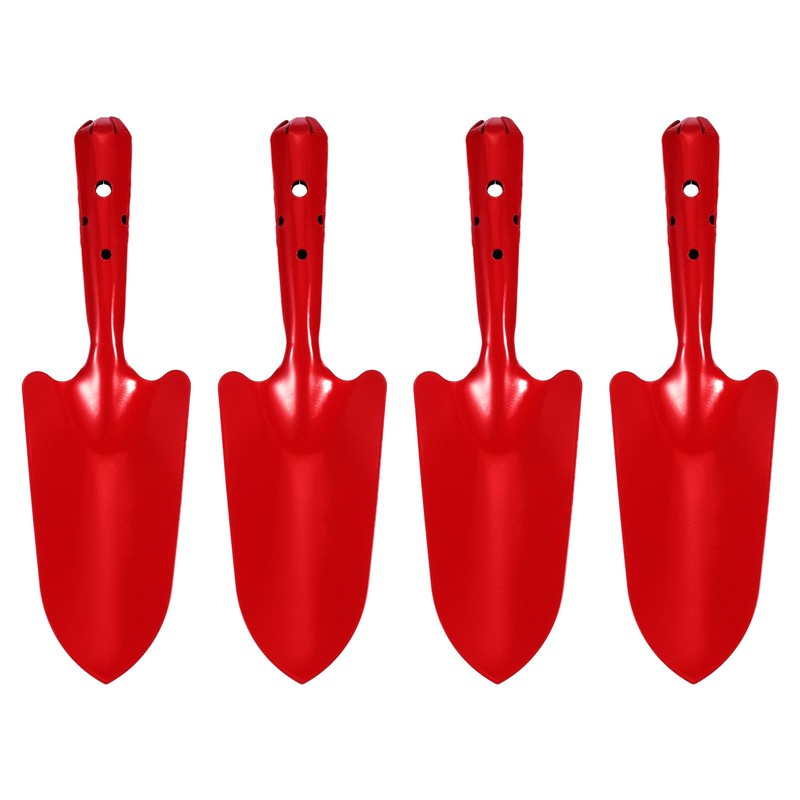 sourcing map 4pcs Mini Colorful Metal Hand Shovel 11" x 3" Digging Trowel Set Transplanting Garden Tools for Flower Soil Digging Planting Weeding Transplanting Garden, Red
