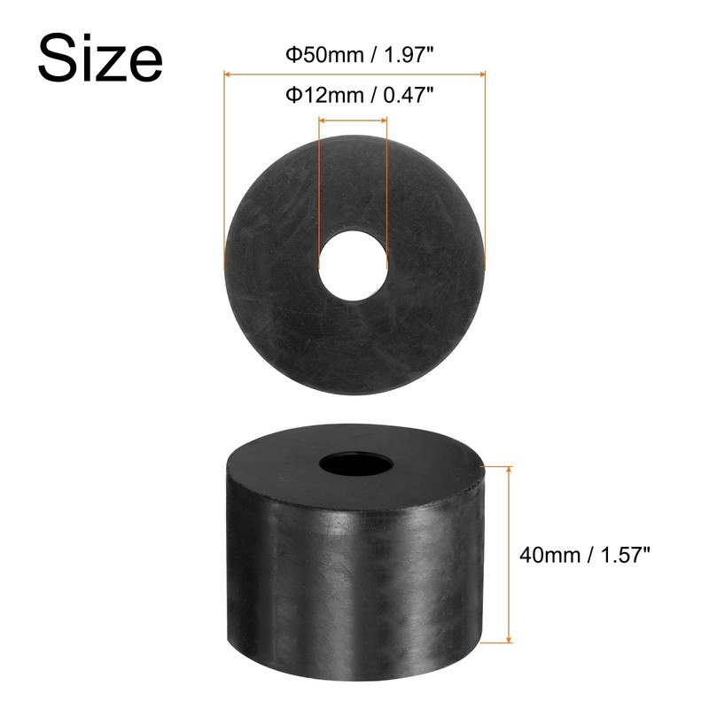 - Size: 4 Pcs rubber spacers vibration damping pads, 50mm OD x 12mm ID x 40mm Height.