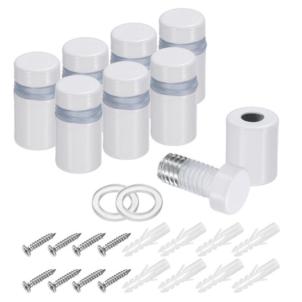 sourcing map 4Pcs Sign Standoff Screws, 15/32" x 25/32" Stainless Steel Wall Standoff Mount Hardware Advertising Glass Nail for Glass Acrylic Panel Picture Frame, White