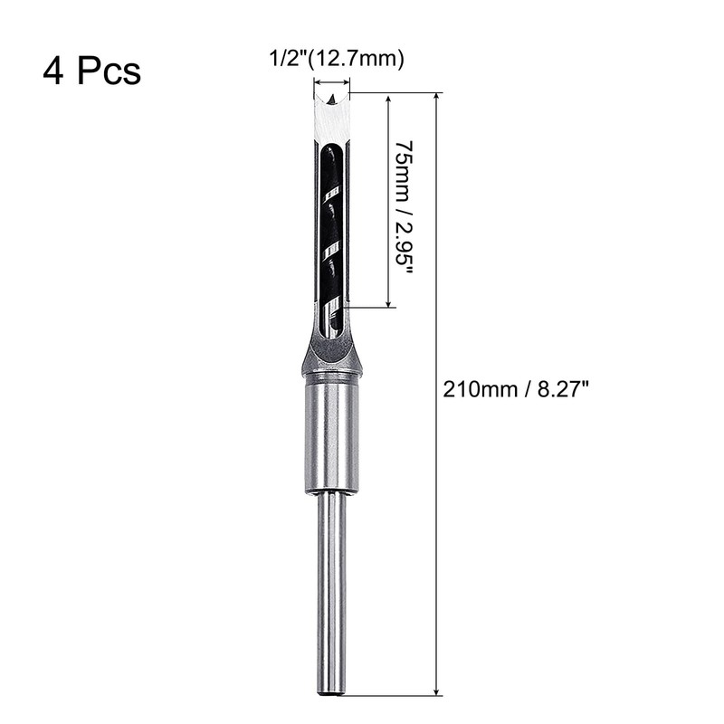 - Size - The square hole drill bit size is 1/2"(12.7mm), Cutting Depth: 75mm / 2.95", Total Length: 210mm / 8.27"
